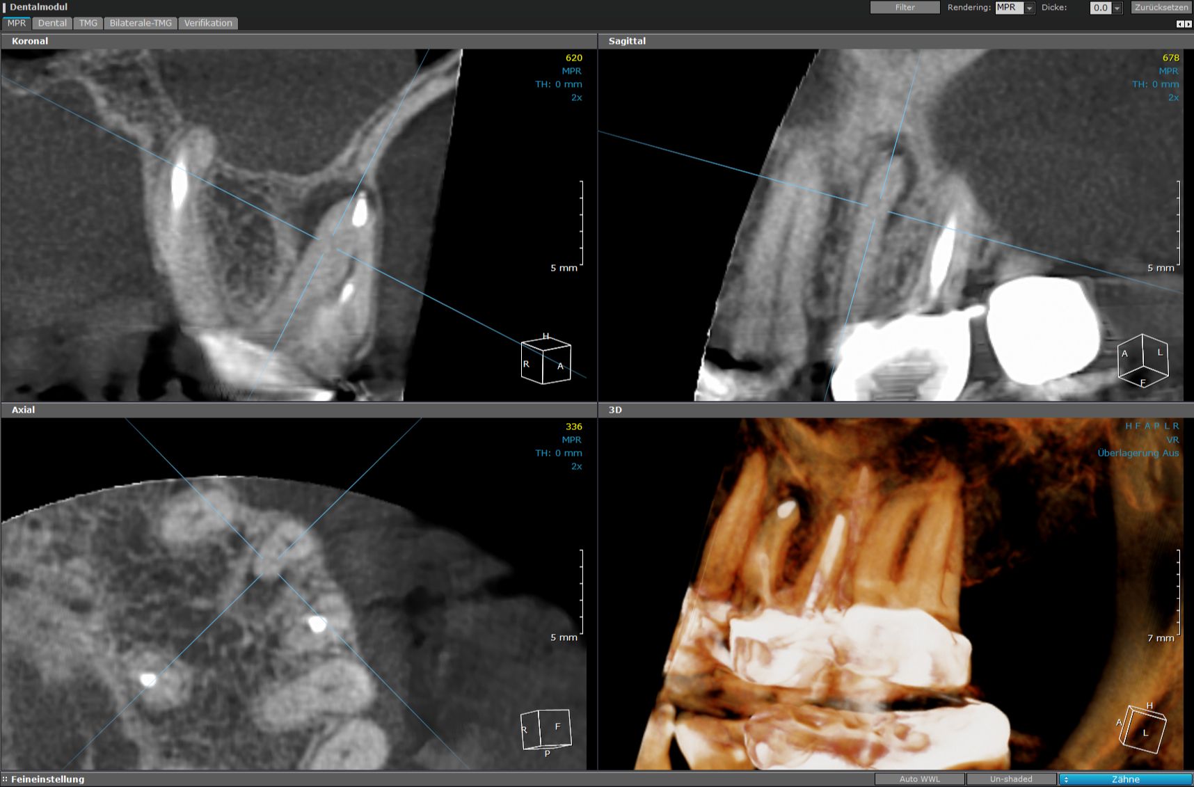 - Die dreidimensionale Darstellung zeigt auch Strukturen, die im zweidimensionalen Röntgenbild verdeckt werden